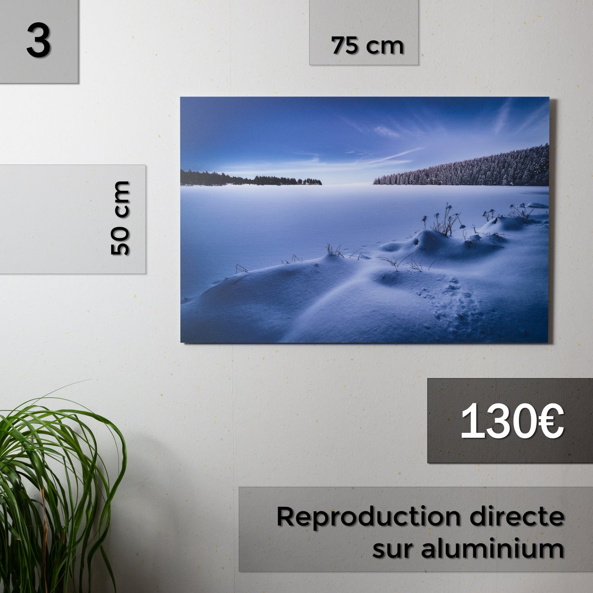_ Repro. n°3 : “Icing on the lake”, lac de Servières. 75×50 cm, impression directe sur aluminium (type Dibond).